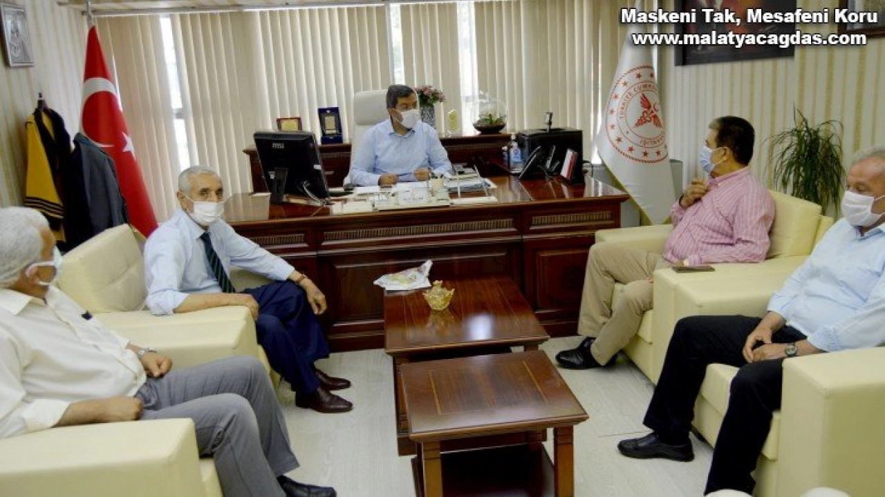 Malatya Esnaf ve Sanatkarlar Odaları Birliği (MESOB) Başkanı Şevket Keskin, Malatya Esnaf ve Sanatkarlar Kredi Kefalet Kooperatifi Başkanı Ali Evren ve Oda başkanları ile birlikte Sağlık İl Müdürü Prof. Dr. Recep Bentli'yi ziyaret ederek, pandemi sürecindeki çalışmalarından dolayı teşekkür ettiler.