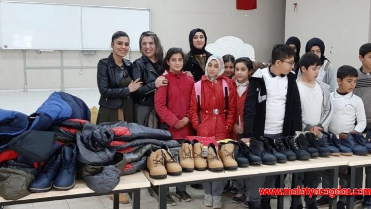 Yaklaşık 6 yıldan bu yana kendi imkanları ile aldıkları ayakkabı, elbise, kırtasiye malzemelerinin yanı sıra evlerinde pasta, kek ve poğaçalar yapan Zeynep Kaya, Züleyha Çelik ve Nilüfer Akın, bu hediyeleri Adıyaman merkez Şehit Cem Özgül İlkokuluna götürdü.