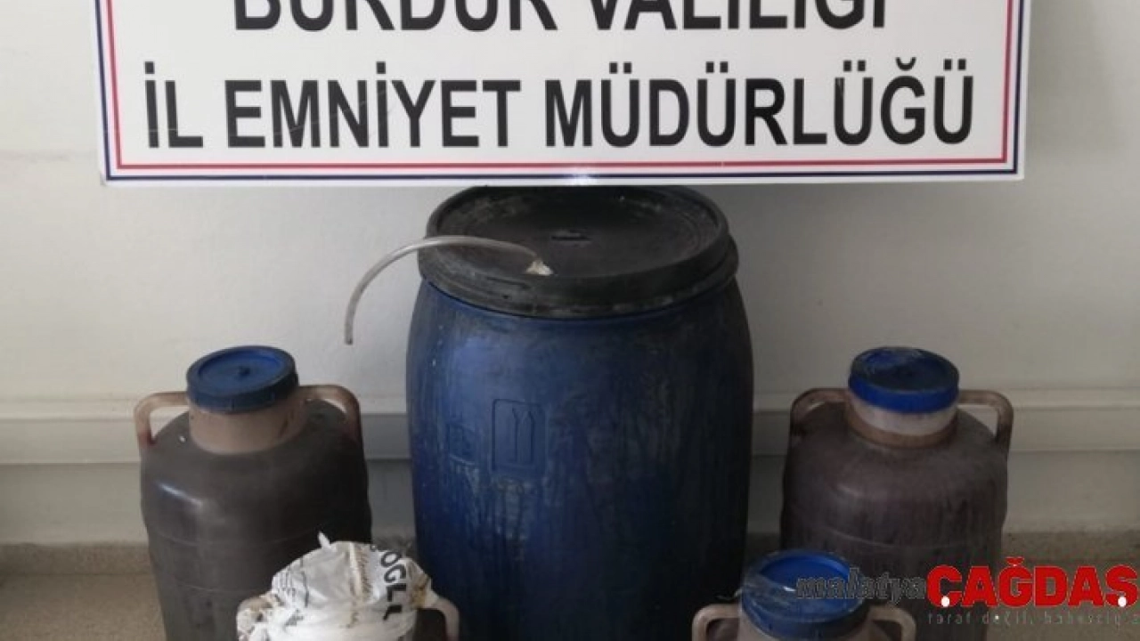 Burdur'da bir ikamette yapılan aramada 145 litre el yapımı alkol ele geçirildi.