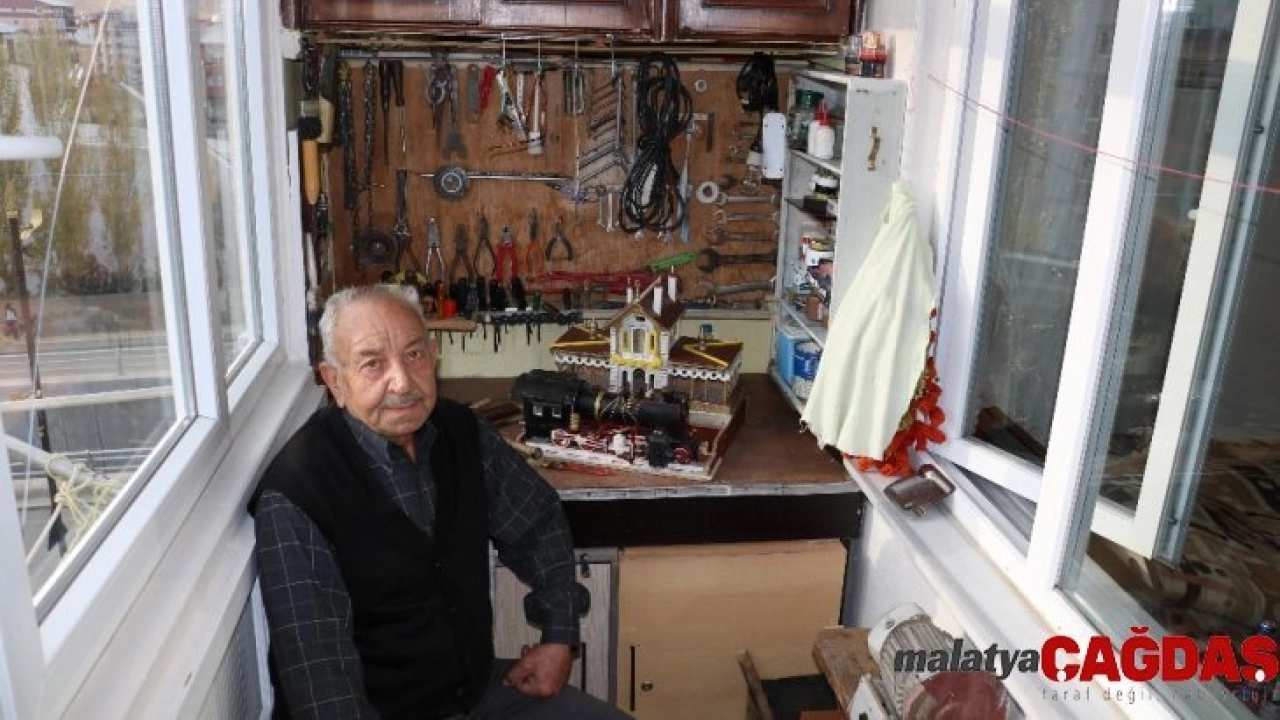 Sivas'ta yaşayan 75 yaşındaki Baki Hafızoğlu, atölyeye çevirdiği evinin balkonunda tarihi yapıların minyatürünü yapıyor.