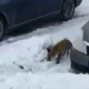Erzurum’da yiyecek arayan tilki yerleşim yerlerine indi. Evlerinin önünde tilkiyi gören vatandaşlar ise onu elleriyle besledi.