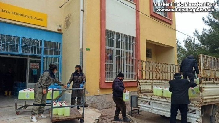 Malatya Hasan Akbudak İMKB Meslek ve Teknik Anadolu Lisesi Kimya Teknolojisi Bölümü öğrencileri 80 ton dezenfektan malzemesi üreterek, 3 milyon TL ciro sağladı.