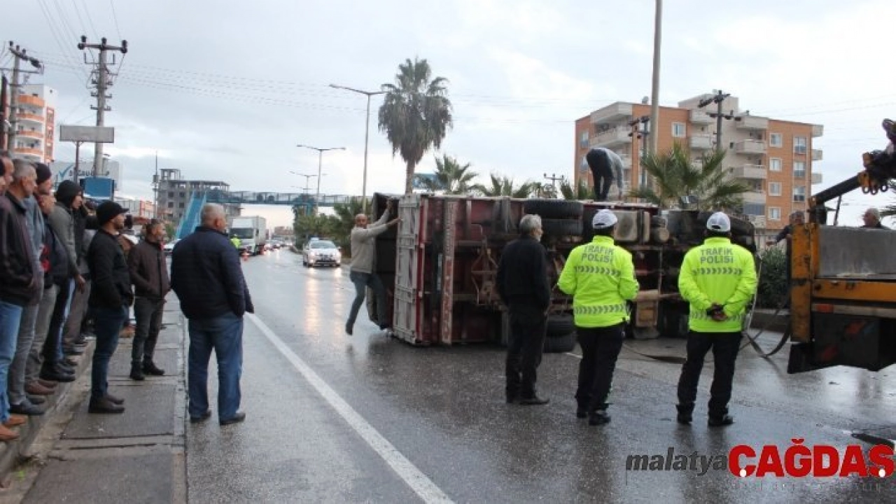Edinilen bilgiye göre, kaza ilçeye bağlı Arpaçbahşiş Mahallesi’nde Mersin-Antalya D-400 karayolunda meydana geldi. 33 DMM 17 plakalı kamyonun şoförü Gökhan Us (27), Yeniköy ışıklı kavşağına yaklaştığı sırada önüne aniden içerisinde yolcuların da bulunduğu bir minibüs çıktı. Minibüse ve yol kenarında bekleyen öğrencilere çarpmamak için kamyon şoförü direksiyonu kırdı. Kamyon refüje çarpıp devrildi. Vatandaşların da yardımıyla yaralı kamyon şoförü araçtan çıkarılarak, ambulansla Erdemli Devlet Hastanesine kaldırıldı. Vatandaşlar kamyon şoförünün büyük bir faciayı önlediğini belirterek, minibüs şoförünün kazaya sebebiyet verdiğini ve hızla kaza yerinden kaçtığını ileri sürüp tepki gösterdi. Kaza sebebiyle karayolunda trafik akışı tek şeritten ve tali yollardan sağlandı.