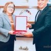 Fatma Şahin, Başkan Karakuş’a Dalaman Belediyesi’nin Türkiye Belediyeler Birliği’nden talep ettiği hibe iş makinesinin anahtarını teslim etti.