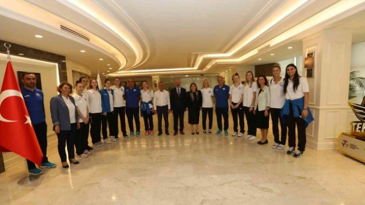 Ziyarette, Merinos Voleybol takımı tarafından hazırlanan 27 numaralı Merinos Voleybol takımı oyuncularının imzaladığı forma Büyükşehir Belediye Başkanı Fatma Şahin”e takdim edildi.