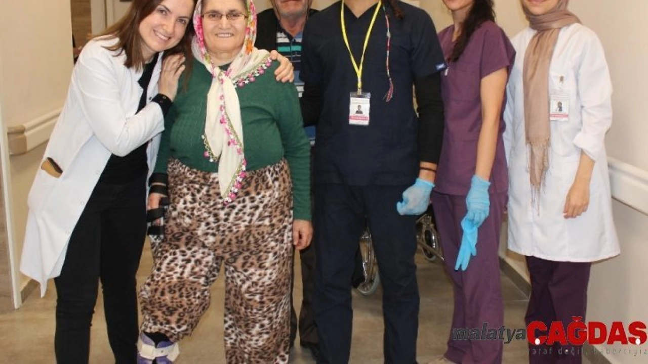 Manisa'nın Alaşehir ilçesinde 8 yıl önce geçirdiği felç sonrası sağ bacağını ve kolunu kullanamayan, konuşma yetisini kaybeden Ümmü Kaygısız, 3 hafta gördüğü fizik tedavi ve rehabilitasyon sonrası ilk adımlarını atmaya başladı.