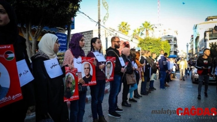 Filistinliler, İsrail hapishanelerinde bulunan Filistinli mahkumlara destek amacıyla Batı Şeria bölgesindeki Ramallah kentinde insan zinciri oluşturdu.