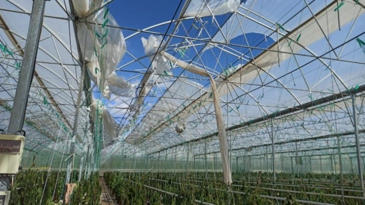 Fırtına ve şiddetli rüzgar nedeniyle büyür zarar gören sera üreticilerinin, 1 milyonun üzerinde zararı olduğu öğrenildi.