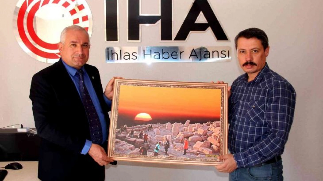 NEFSAD Başkanı Bilal Mente, İhlas Haber Ajansı Adıyaman Bürosunu ziyaret etti. Adıyaman Muhabiri Ahmet Arslantaş’a Nemrut Dağı fotoğrafını hediye eden Bilal Mente, tarih ve turizm haberleri yaparak Adıyaman’ın tanıtılmasına katkı sağladığı için teşekkür etti.