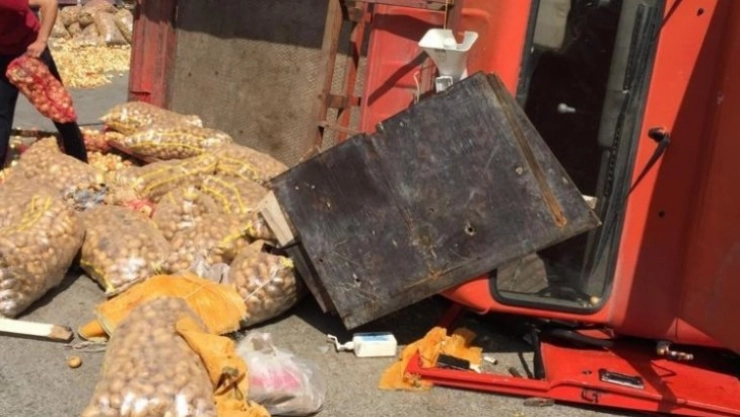 Kaza sonrası araçlarda maddi hasar meydana gelirken kamyonetin içinde bulunan soğan ve patatesler ise çevreye savruldu.