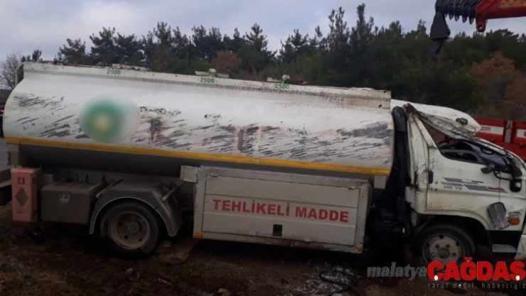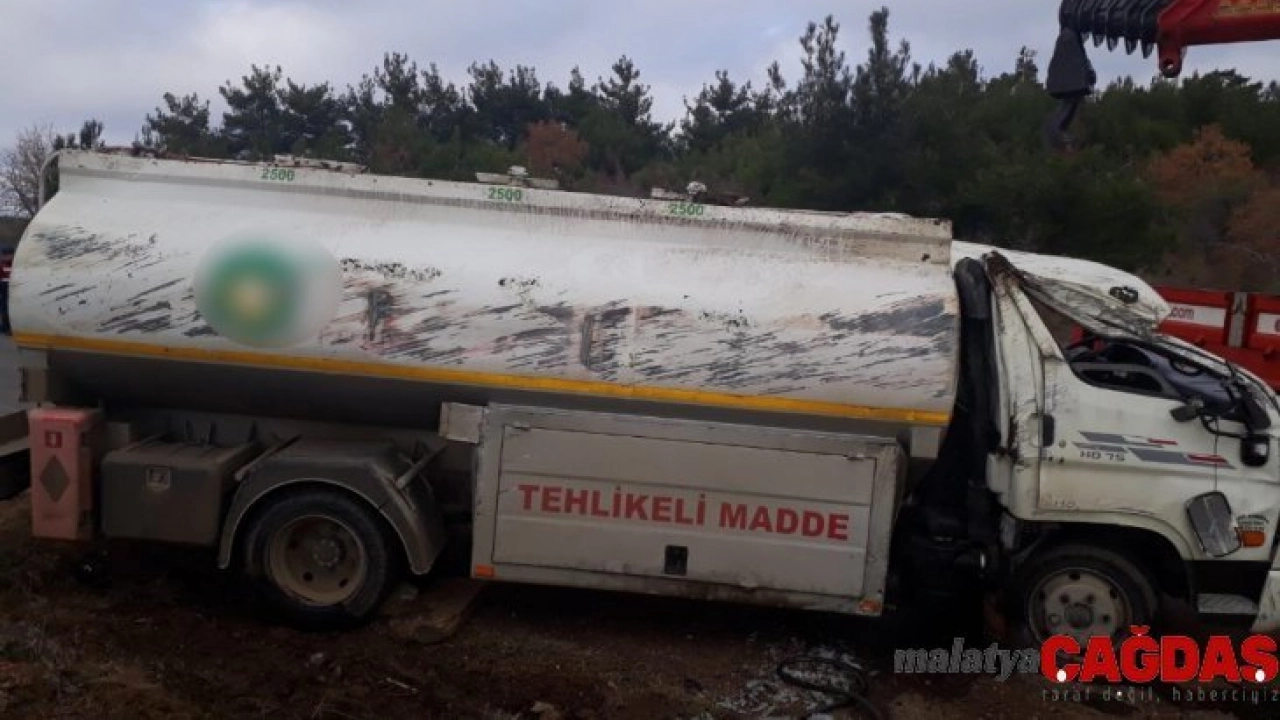 Freni patlayan yakıt tankeri takla attı