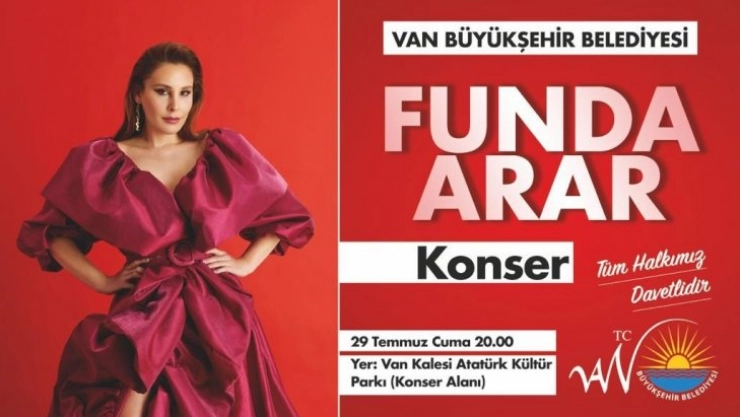 Van Büyükşehir Belediyesi kültür sanat etkinlikleri çerçevesinde ünlü şarkıcı Funda Arar'ı Vanlılarla buluşturuyor.