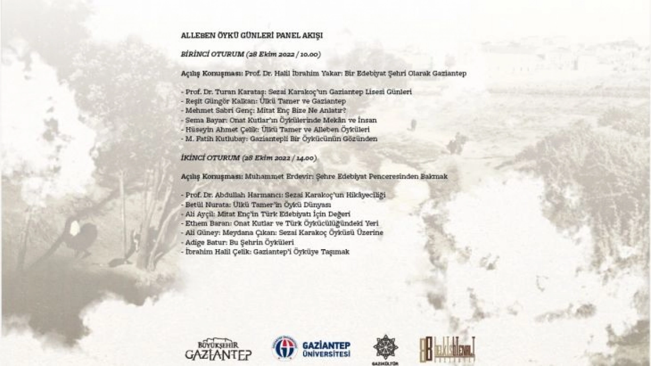 Gaziantep Büyükşehir Belediyesi iştiraklerinden Gazikültür tarafından birincisi düzenlenen 'Gaziantep Belkıs Bienali' çerçevesinde gerçekleştirilen 'Alleben Öykü Günleri'nde yazıları, şiirleri, öyküleri ve sanat anlayışlarıyla Türk edebiyatında derin izler bırakmış Gaziantepli yazarlar, düzenlenecek panelde öykücü ve eleştirmenler tarafından anılacak.