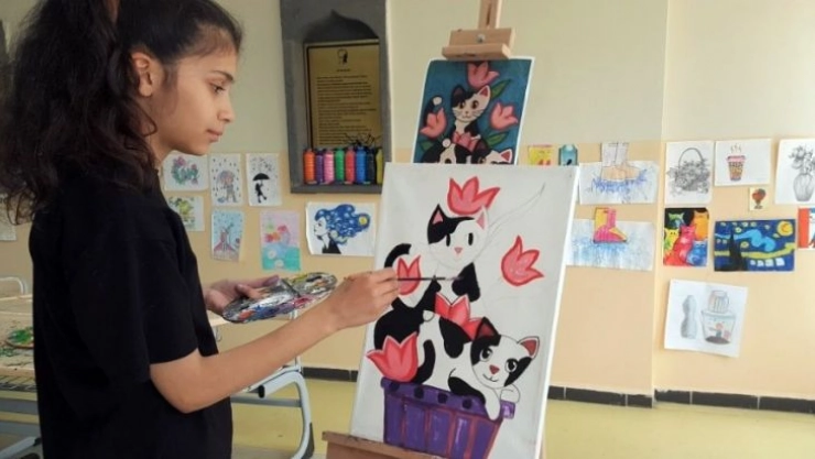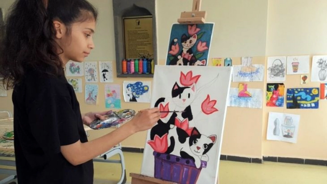 Diyarbakır Büyükşehir Belediyesi bünyesinde hizmet veren bilgi evlerinde eğitim alan öğrenciler, yeteneklerini sanat atölyelerinde geliştiriyor.