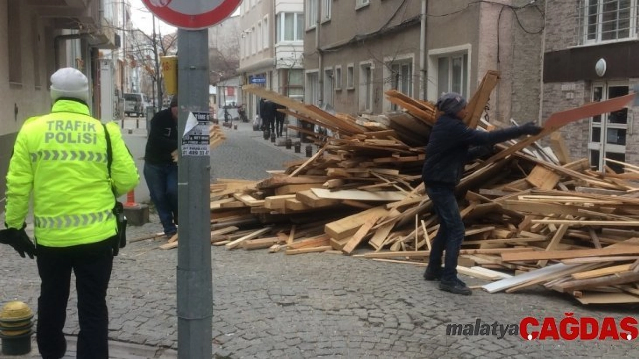 Gelişi güzel atılan kalaslar sokağı trafiğe kapattı