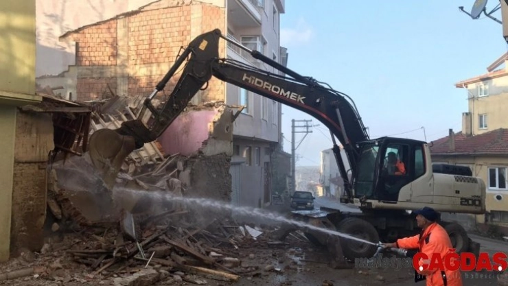 Gemlik ilçesindeki çeşitli mahallelerdeki metruk binalar belediye ekipleri tarafından yıkıldı.