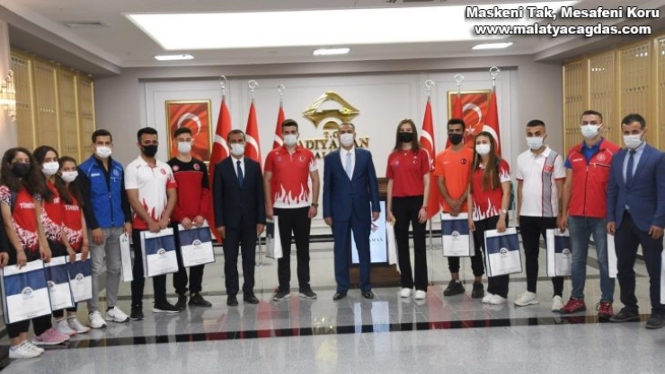 19 Mayıs Atatürk'ü Anma, Gençlik ve Spor Bayramının 102. yıl dönümü ve Gençlik Haftası etkinlikleri kapsamında Adıyamanlı milli sporcular, Vali Mahmut Çuhadar'ı makamında ziyaret etti.