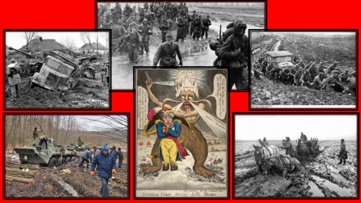 Her ne kadar General Kış Rusya’yı Demirbaş Şarl ve Napolyon’dan korumuş ise de coğrafyanın asıl generali çamurdur. Zira kış ayazında don olan steplerde ordular çok zor da olsa hareket edilebilirken kışın öncesinde ve sonrasında komutayı ele alan General Çamur orduların korkulu rüyası olmuştur.