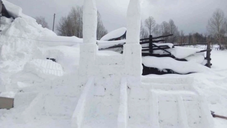 Sivas'ın Kızılelma köyünde yaşayan bir vatandaş uzak olduğu için gidemediği Sivas'ın sembollerinden olan Çifte Minareli Medrese'nin kardan maketini yaparak özlemini giderdi.