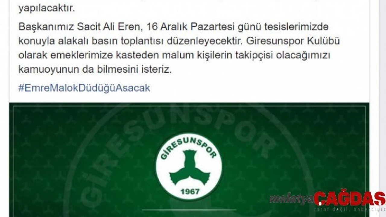 Yeşil-beyazlı ekibin sosyal medya hesabından yapılan açıklamada, “Büyükşehir Belediye Erzurumspor maçının “sözde” hakemi Emre Malok hakkında TFF ve MHK başta olmak üzere gerekli kurumlara başvurular yapılacaktır. Başkanımız Sacit Ali Eren, 16 Aralık Pazartesi günü tesislerimizde konuyla alakalı basın toplantısı düzenleyecektir. Giresunspor Kulübü olarak emeklerimize kasteden malum kişilerin takipçisi olacağımızı kamuoyunun da bilmesini isteriz” denildi.