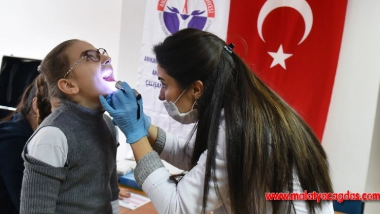 Diş hekimi Zeynep Şahin tarafından yapılan diş taramalarında merkeze gelen çocuklar muayene edilerek, diş hastalıkları tek tek tespit edildi.