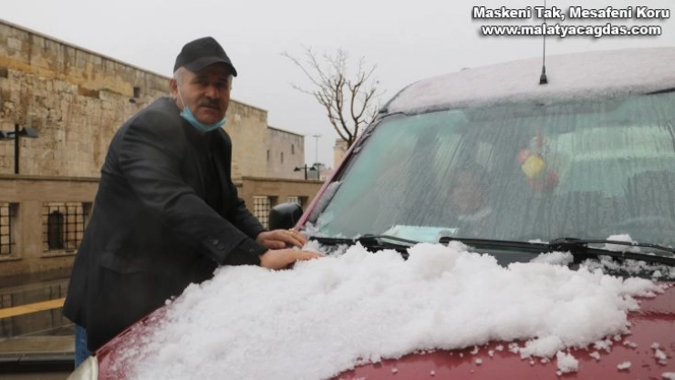 Sivas'ta gök gürültüsüyle birlikte yağan dolu, kısa sürede şehri beyaza bürüdü.
