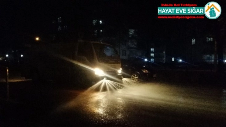 Adıyaman'ın Gölbaşı Belediyesi korona virüs salgını nedeniyle vatandaşların sağlığı için gece gündüz cadde ve sokakları dezenfektan ile yıkıyor.