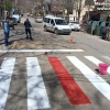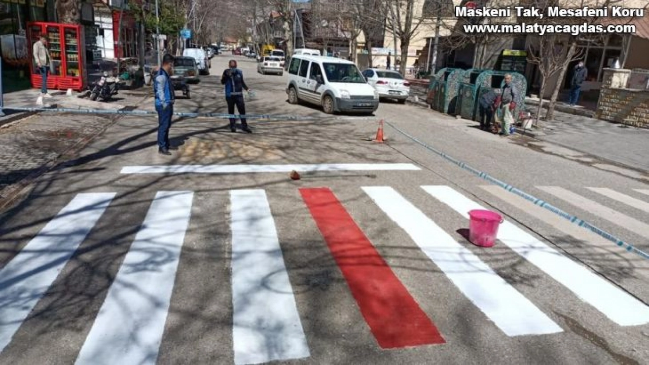 Adıyaman'ın Gölbaşı Belediyesi okul önlerindeki yaya geçitlerine kırmızı çizgi çekiyor.