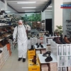 Adıyaman'ın Gölbaşı ilçesinde korona virüs salgınına karşı esnaflar iş yerlerini dezenfekte ediyor.
