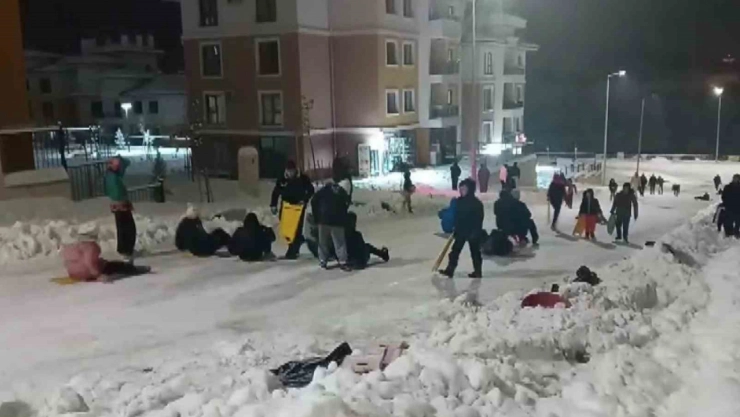 Karın tadını çıkarmak isteyen küçük-büyük her yaştan vatandaş soluğu dışarıda aldı. Profesyonel kızakların yanı sıra, evlerinden getirdikleri naylon poşetler, leğenler ve kendi imkanlarıyla yaptıkları kızaklarla yokuşlardan aşağı kayan çocuklar, dondurucu soğuğa aldırış etmeden saatlerce eğlendi.
