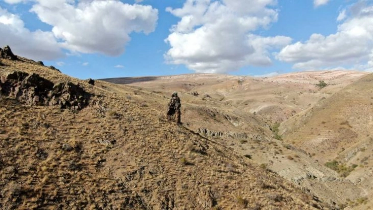 Sivas'ın Gürün ilçesinde bir dağın tepesinde bulunan ve kadını andıran 'gelin taşı' görenlerin dikkatini çekerken hikayesi ise merak uyandırıyor.