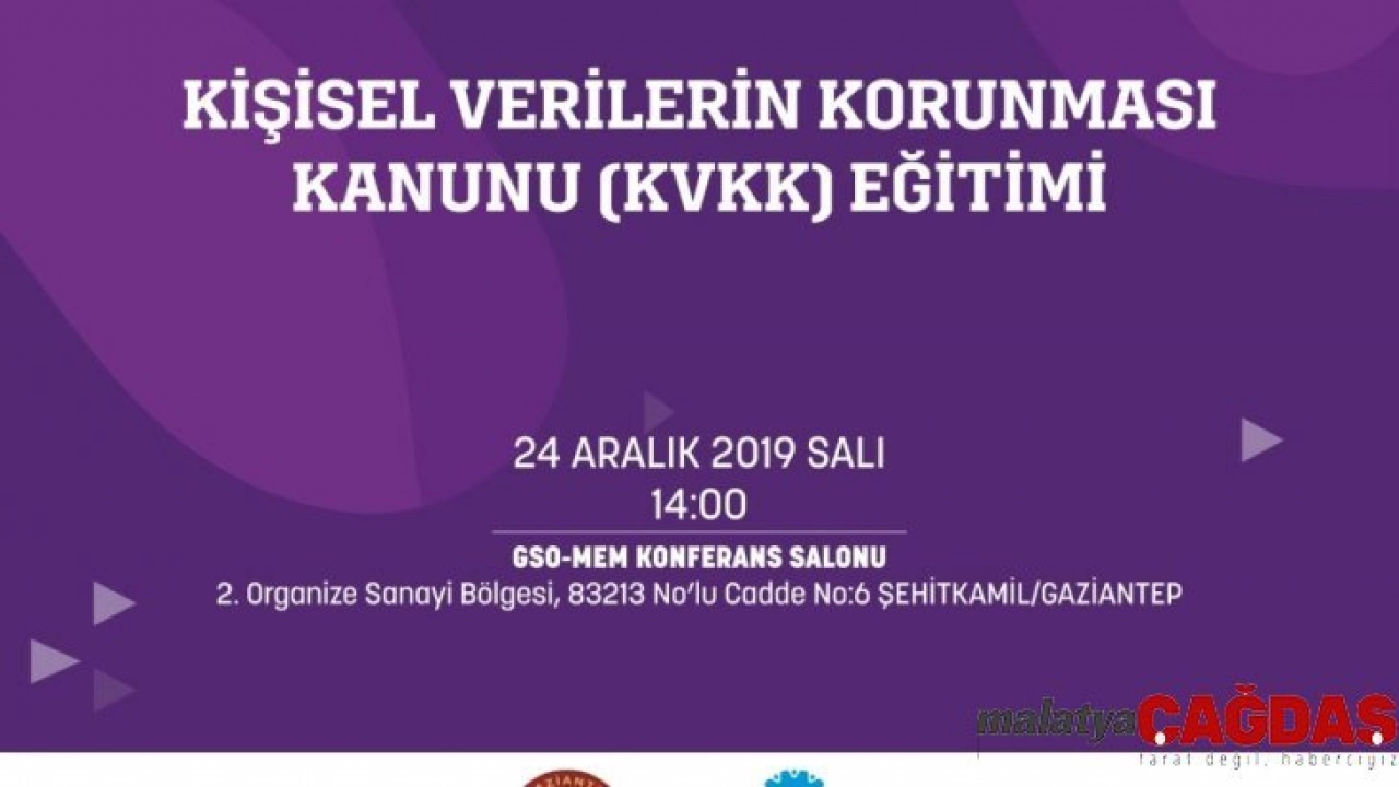 Gaziantep Sanayi Odası (GSO) ile Rasyotek İnsan Kaynakları iş birliğinde, 6698 sayılı 'Kişisel Verilerin Korunması Kanunu kapsamda, 24 Aralık 2019 Salı günü saat 14:00'de GSO Mesleki Eğitim Merkezi'nde (GSO-MEM), 'Kişisel Verilerin Korunması Kanunu Eğitimi' verilecek.