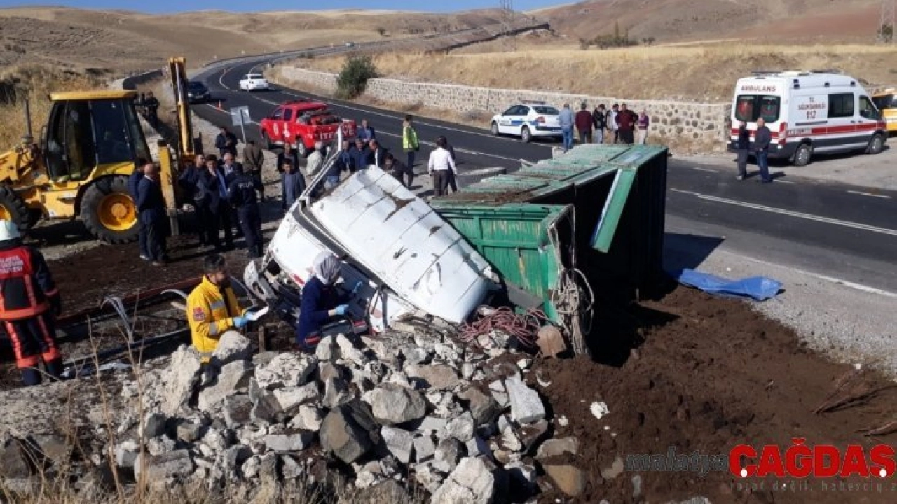 Malatya'nın Arguvan ilçesinde gübre yüklü bir kamyonun devrilmesi sonucu yaşanan kazada 1 kişi öldü, 1 kişi yaralandı.