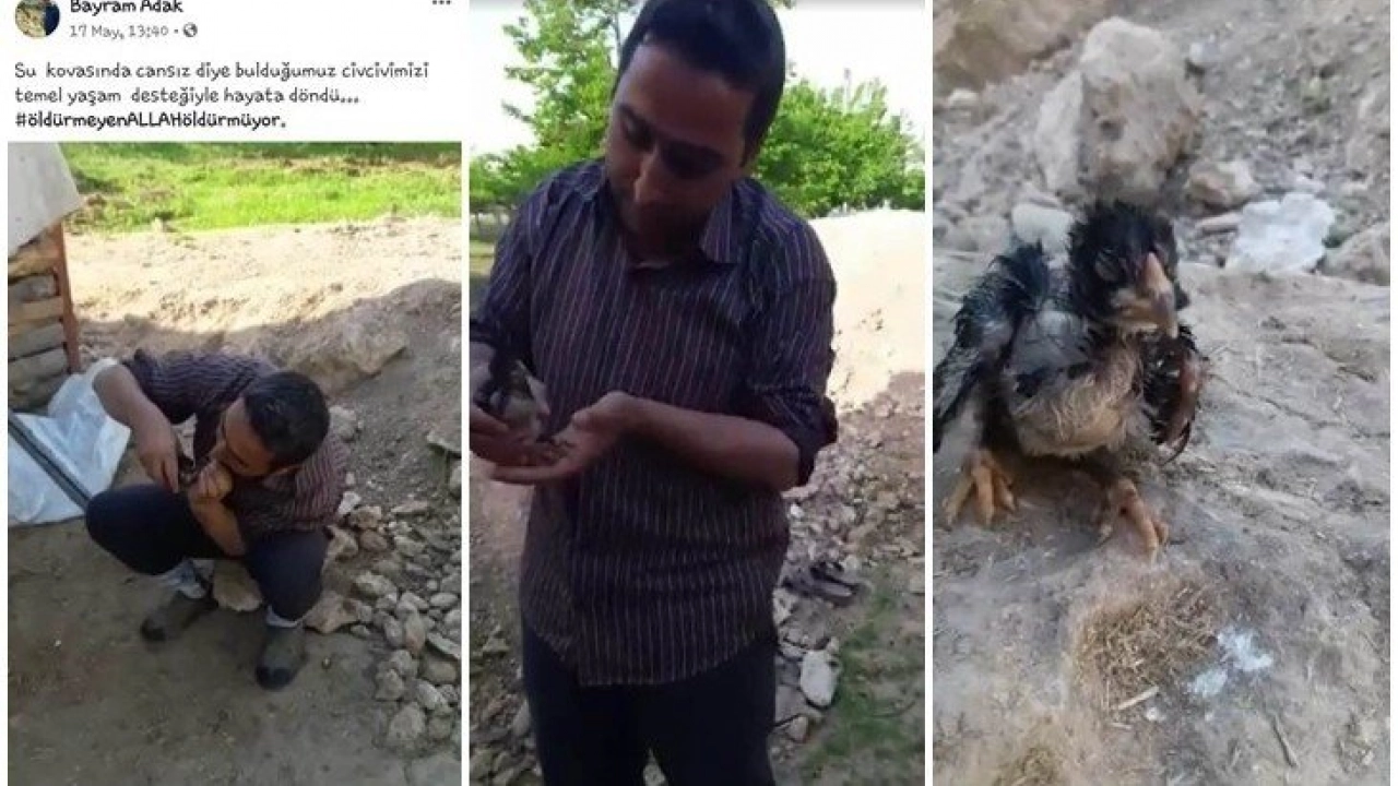 Malatya’da yaşayan Bayram Adak su kovasına düşen ve ölmek üzere olan civcivi suni teneffüsle hayata döndürdü. Adak’ın civcivi kurtarma mücadelesi herkesin takdirini kazandı.