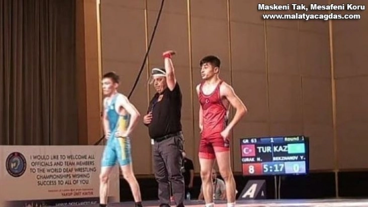 Şampiyonada mindere çıkan 63 Kilogramda Malatya Gençlik Hizmetleri Spor Kulübü güreşçisi Hamza Kurak, Grekoromen dalda Dünya üçüncüsü olarak kürsüye çıktı.