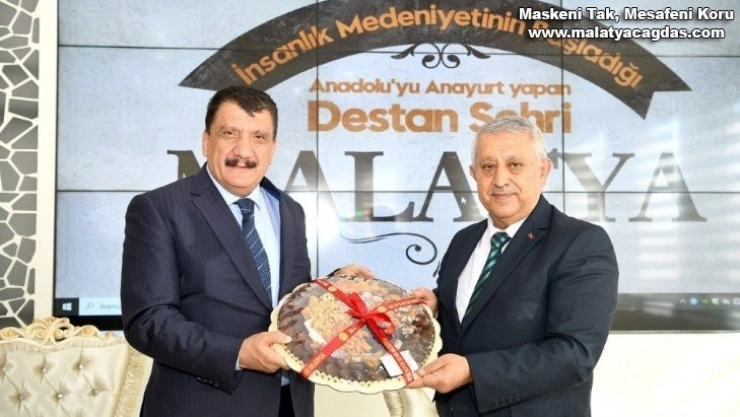 Malatya Büyükşehir Belediye Başkanı Selahattin Gürkan, Afyonkarahisar Belediye Başkanı Mehmet Zeybek, Afyonkarahisar Belediye Başkan Yardımcıları ve Meclis Üyelerini makamında kabul ederek bir süre görüştü.