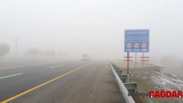 Bitlis'in Güroymak ilçesinde yoğun sis nedeniyle görüş mesafesi 10 metreye kadar düştü.