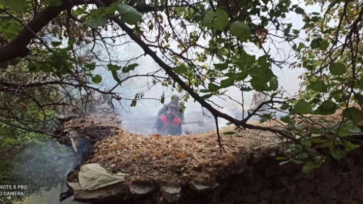 Van'ın Gürpınar ilçesinde çıkan yangında bir ahır kullanılamaz hale geldi.