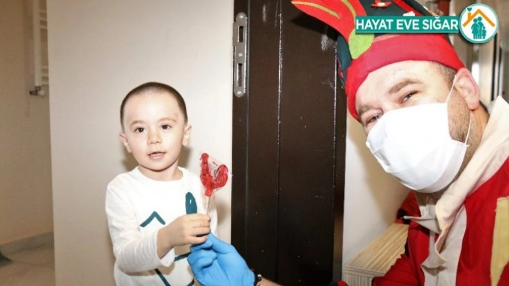 Yurt dışından aileleri ile birlikte Sivas'a getirilerek karantinaya alınan çocuklar, Hacivat ve Karagöz kılığına giren yurt çalışanları tarafından neşelendirildi