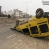 Hafif ticari araç, refüje çarparak takla attı,o anlar kamerada