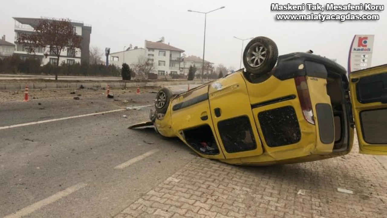 Elazığ'da sürücüsünün direksiyon hakimiyetini kaybettiği hafif ticari araç, refüje çaparak takla atması sonucu meydana gelen kazada, 3 kişi yaralandı. Kaza anı ise güvenlik kameralarına saniye saniye yansıdı.