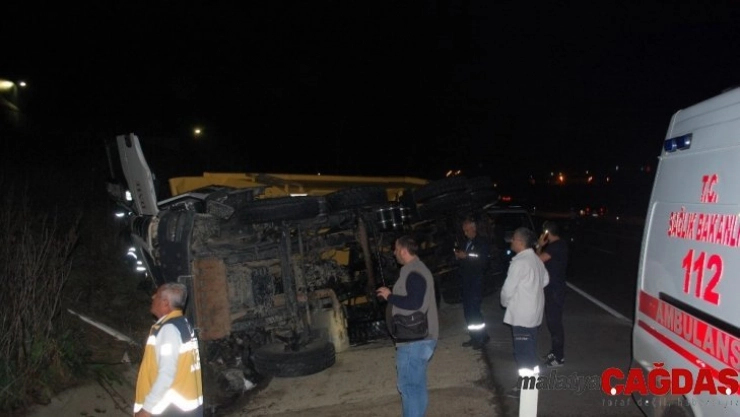 Hafriyat kamyonu su kanalına devrildi: 1 ağır yaralı