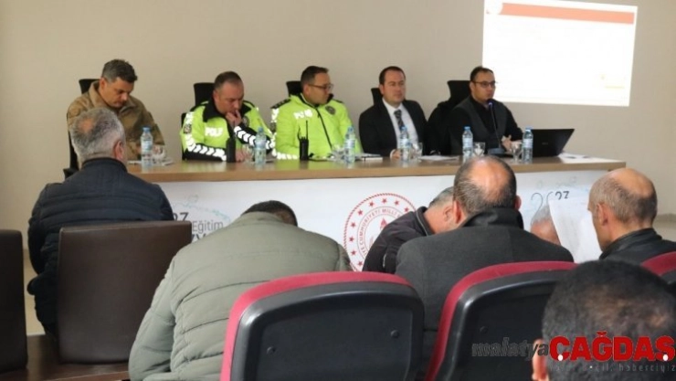 HAKKARİ (İHA) – Hakkari İl Milli Eğitim Müdürü Bilal Gür'ün talebi ve koordinasyonunda İl Emniyet Müdürlüğü ve İl Jandarma Komutanlığından üst düzey yetkililerin de katılımıyla taşıma ve servis şoförleriyle toplantı yapıldı.