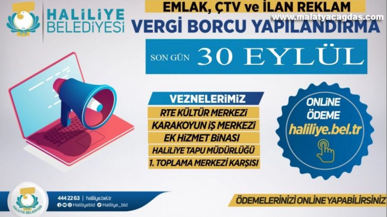 Haliliye Belediyesi, 7326 sayılı yapılandırma kanunu kapsamında başlatılan vergi borcu yapılandırma işlemlerinin 30 Eylül 2021 tarihine kadar devam ettiğini hatırlattı.