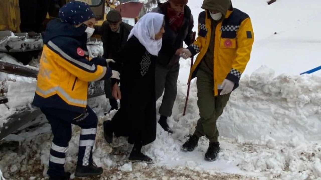 Hanife nine, karlı yollar aşılarak hastaneye ulaştırıldı