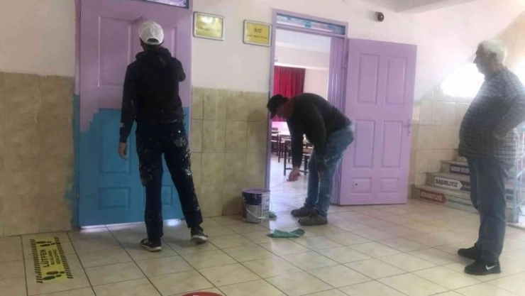 Başkan Karataş’ın talimatıyla harekete geçen ekipler, ilçeye bağlı Akbez Veysel Şirin İlköğretim Okulu’nun eskiyen kapı ve korkuluklarını boyayarak yepyeni bir görünüme kavuşturdu.