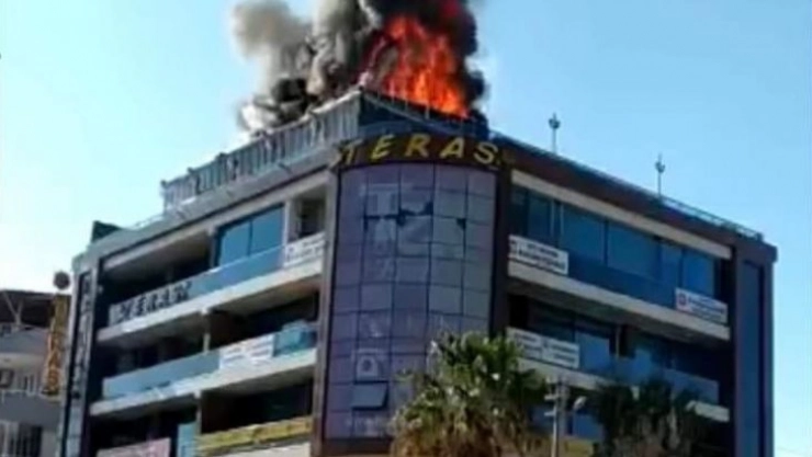 Hatay'ın Arsuz ilçesinde alışveriş merkezinde bulunduğu binanın çatı katındaki kafede çıkan yangın itfaiye ekipleri tarafından söndürüldü.