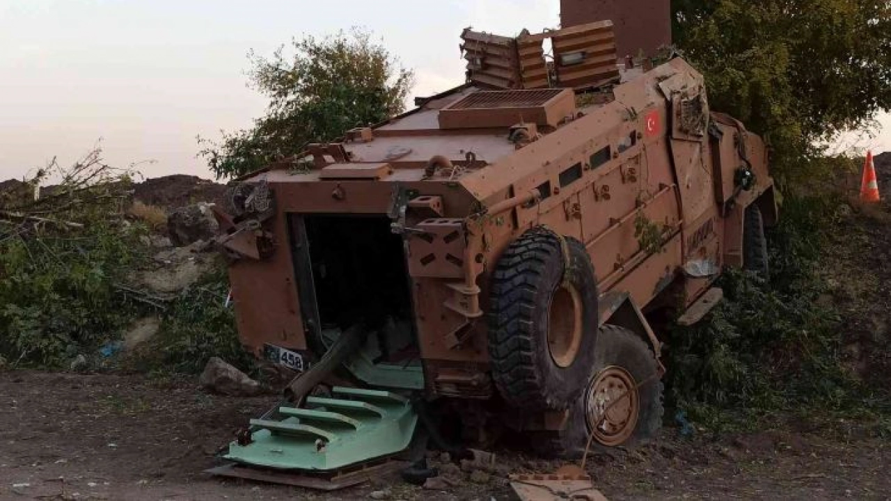 Hatay'da Suriye sınırına komşu olan Reyhanlı ilçesinden Antakya istikametine giden askeri konvoyda kirpi diye adlandırılan askeri araç kaza yaparak şarampole devrildi.
