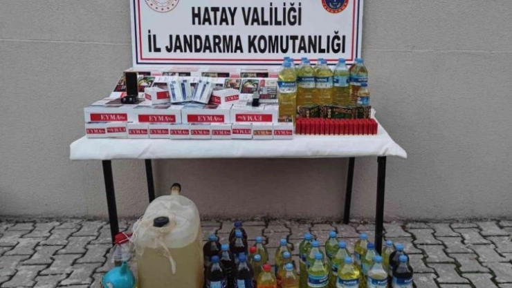 Hatay'ın Altınözü ilçesinde 70 litre kaçak benzin, 13 litre motor yağı, 19 bin 800 adet bandrolsüz makaron, 50 paket sigara ve 89 adet av tüfeği fişeği ele geçirildi.