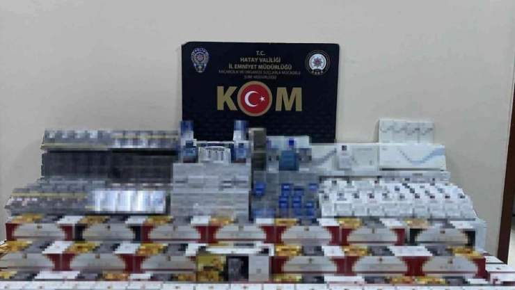 Hatay İl Emniyet Müdürlüğü görevlileri kaçakçılık suçları kapsamında çalışma gerçekleştirdi. Haraparası ve Akasya mahallelerinde bulunan iki iş yerinde yapılan aramada 620 paket gümrük kaçağı sigara, 21 bin adet makaron, 65 kilogram nargile tütünü ele geçirildi.
